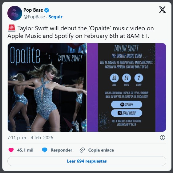 Por su parte, “Opalite” es uno de los temas más comentados del disco debido a su letra introspectiva, su sonido fresco y el uso de metáforas cargadas de emoción.