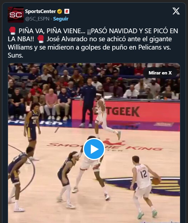 De acuerdo a la NBA, “el incidente comenzó cuando Alvarado cometió una falta defensiva sobre Williams, quien a su vez empujó a Alvarado por la espalda”. Alvarado, base boricua de los Pelicans, “elevó entonces la tensión y los jugadores se enzarzaron en un altercado sobre la pista con intercambio de golpes”.
