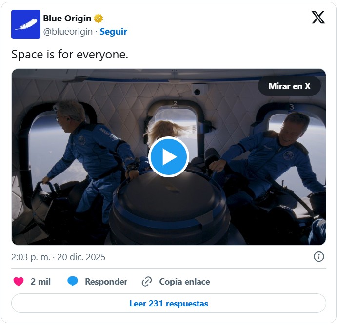 Según aseguró Blue Origin en la red social X, este es «un paso más hacia la accesibilidad de los viajes espaciales para todos».