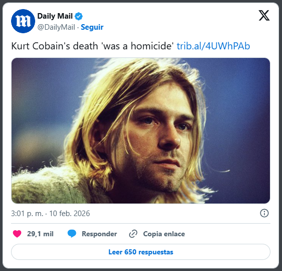 La muerte de Kurt Cobain habría sido un homicidio, según una nueva investigación forense independiente que cuestiona los resultados oficiales de 1994.